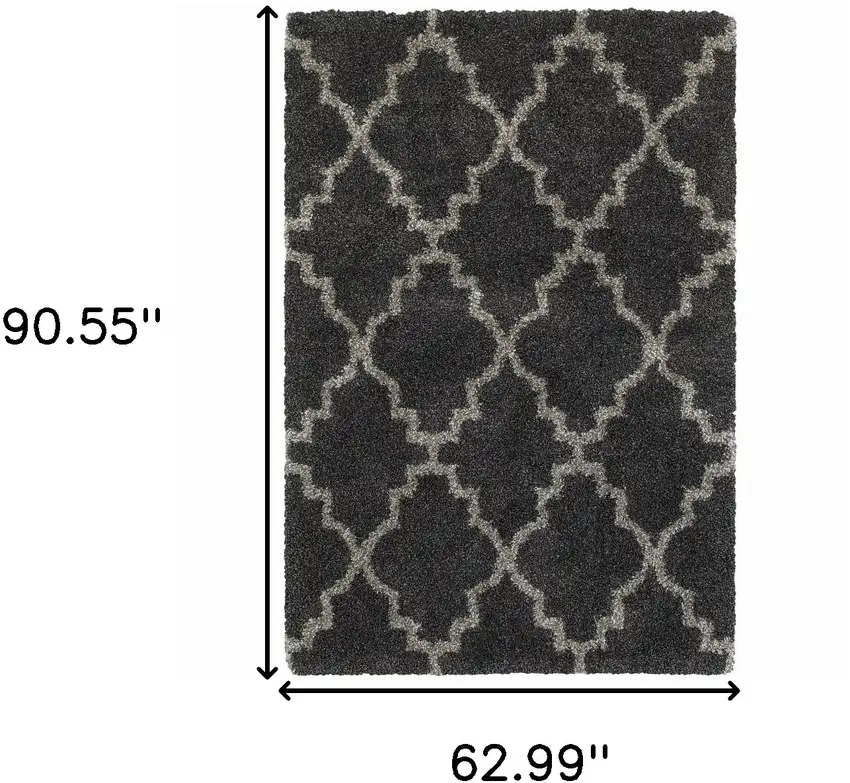 Charcoal And Grey Geometric Shag Power Loom Stain Resistant Area Rug