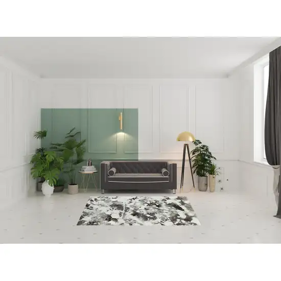 Charcoal And White Abstract Power Loom Stain Resistant Area Rug
