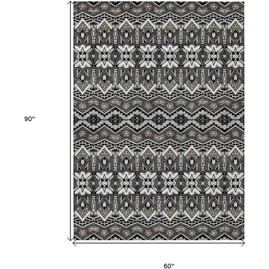 Set an inviting tone in your space with this 5-foot x 8-foot charcoal brown and ivory moroccan washable indoor outdoor area rug. This rectangle shaped rug features a moroccan design that will work well both indoors or out. A classic shape marries with good looking design for your living room, hall, bedroom, porch, patio, or poolside. Ideal for outdoor spaces or high traffic areas with kids and pets, this rug is made from heavy duty polyester that is stain resistant to help repel water, dirt, and stains. Makes a great way to dress up your patio, porch, or poolside, but also works well as a durable and easy to maintain option in the kitchen, family room, or mudroom. 60-inch h x 90-inch w x 0.19-inch d.