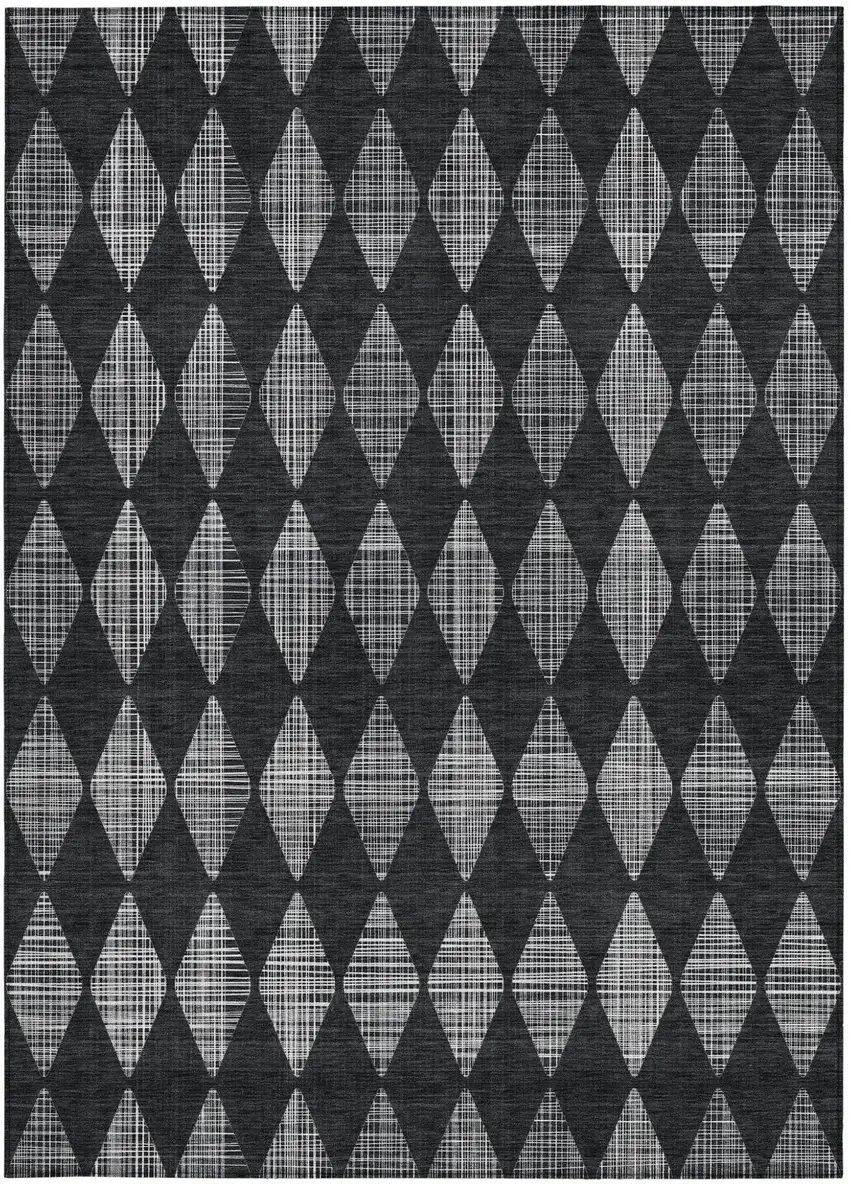Add great coloration and comfortable texture to your space with this 10-foot x 14-foot charcoal geometric washable non skid indoor outdoor area rug. This rectangle shaped rug features a geometric design that will work well both indoors or out. A classic shape marries with good looking design for your living room, hall, bedroom, porch, patio, or poolside. Ideal for outdoor spaces or high traffic areas with kids and pets, this rug is made from heavy duty polyester that is stain resistant to help repel water, dirt, and stains. Makes a great way to dress up your patio, porch, or poolside, but also works well as a durable and easy to maintain option in the kitchen, family room, or mudroom. 120-inch h x 168-inch w x 0.19-inch d
