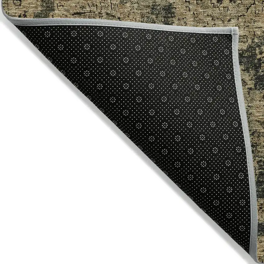 Charcoal Gold And Tan Floral Washable Indoor Outdoor Area Rug