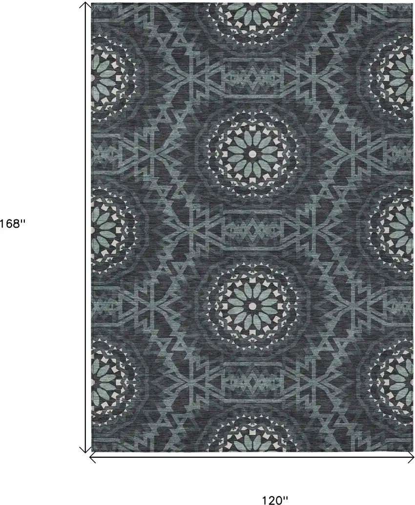 Charcoal Gray And Ivory Floral Medallion Washable Indoor Outdoor Area Rug