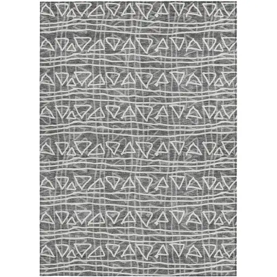 Set an inviting tone in your space with this 10-foot x 14-foot charcoal gray and ivory geometric washable indoor outdoor area rug. This rectangle shaped rug features a geometric design that will work well both indoors or out. A classic shape marries with good looking design for your living room, hall, bedroom, porch, patio, or poolside. Ideal for outdoor spaces or high traffic areas with kids and pets, this rug is made from heavy duty polyester that is stain resistant to help repel water, dirt, and stains. Makes a great way to dress up your patio, porch, or poolside, but also works well as a durable and easy to maintain option in the kitchen, family room, or mudroom. 120-inch h x 168-inch w x 0.19-inch d.