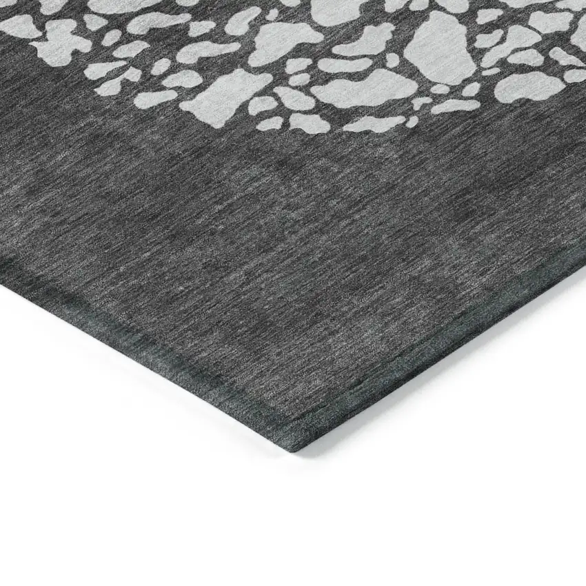 Charcoal Gray And Silver Abstract Washable Indoor Outdoor Area Rug