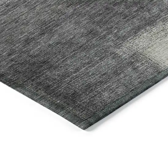 Charcoal Gray And Silver Abstract Washable Indoor Outdoor Area Rug