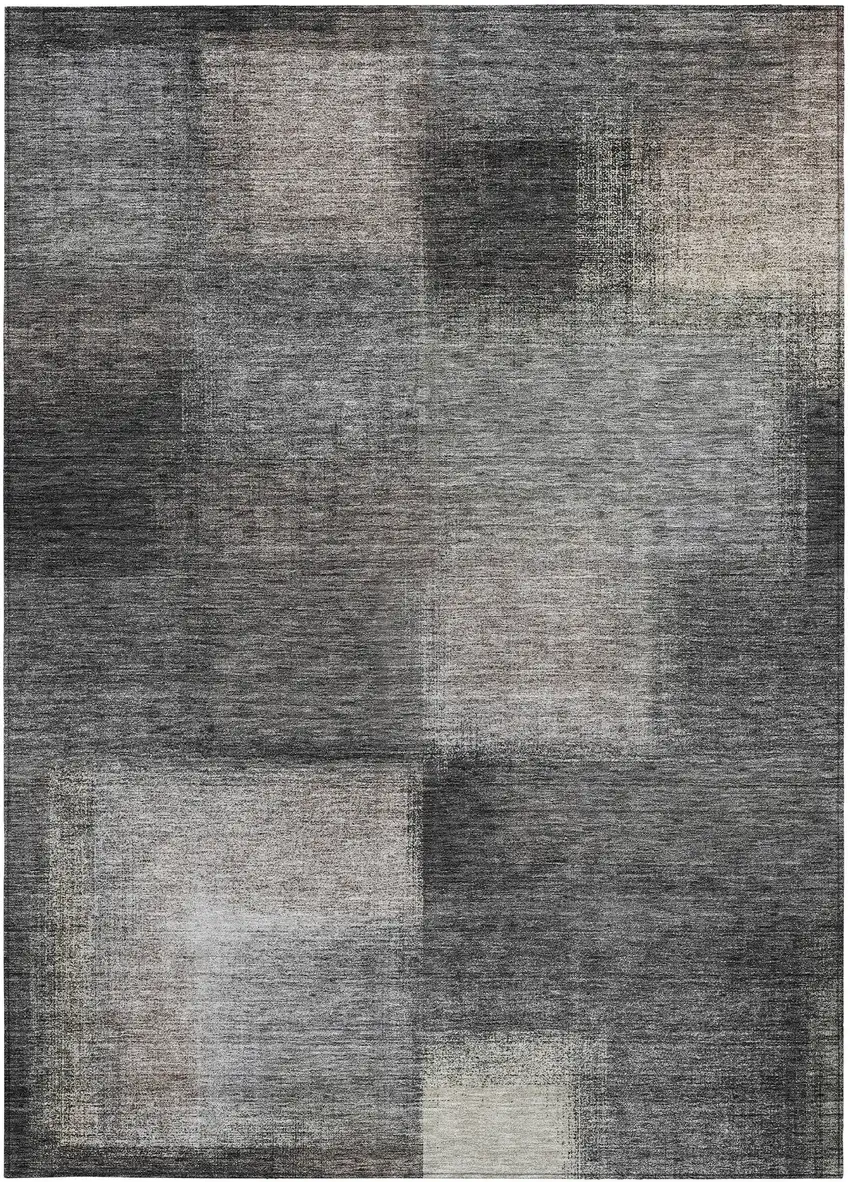 Add great coloration and comfortable texture to your space with this 5-foot x 8-foot charcoal gray and silver abstract washable indoor outdoor area rug. This rectangle shaped rug features a abstract design that will work well both indoors or out. A classic shape marries with good looking design for your living room, hall, bedroom, porch, patio, or poolside. Ideal for outdoor spaces or high traffic areas with kids and pets, this rug is made from heavy duty polyester that is stain resistant to help repel water, dirt, and stains. Versatile in use, durable, and easy to maintain, this rug is an ideal solution to add a decorative and inviting touch to your indoor or outdoor space. 60-inch h x 90-inch w x 0.19-inch d.