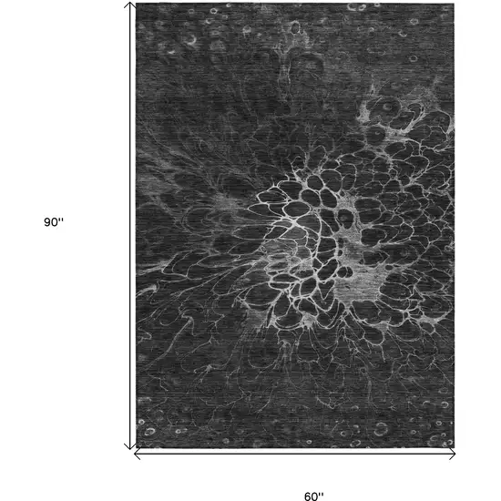 Charcoal Gray And Silver Abstract Washable Indoor Outdoor Area Rug