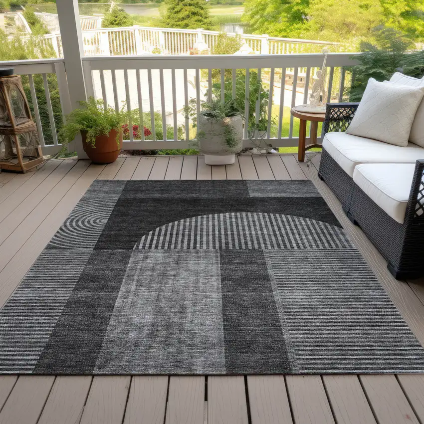 Charcoal Gray And Silver Geometric Washable Indoor Outdoor Area Rug