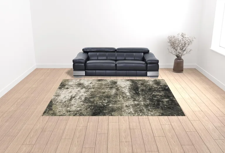 Charcoal Grey And Beige Abstract Power Loom Stain Resistant Area Rug