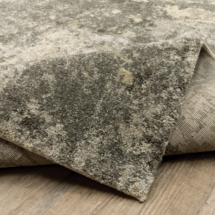 Exhibit your taste for abstract art with this power loom rug. It has a classic combination of charcoal grey, beige, and tan, making it versatile addition to any decor style.