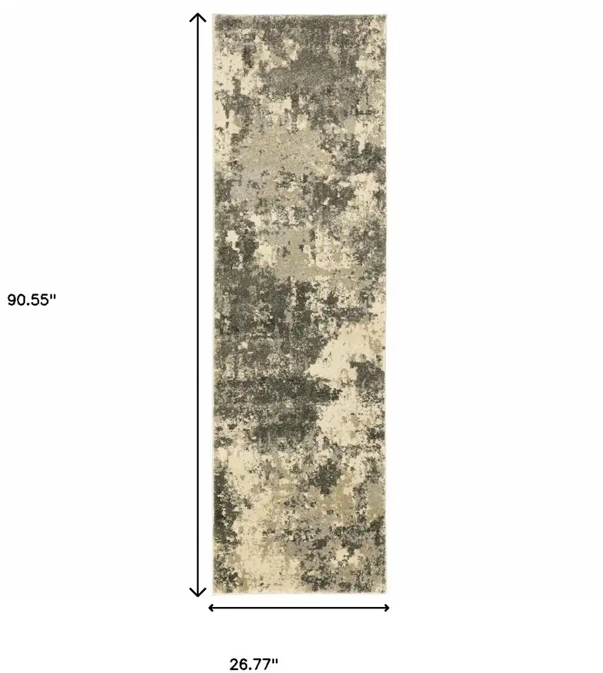 Charcoal Grey Beige And Tan Abstract Power Loom Stain Resistant Runner Rug