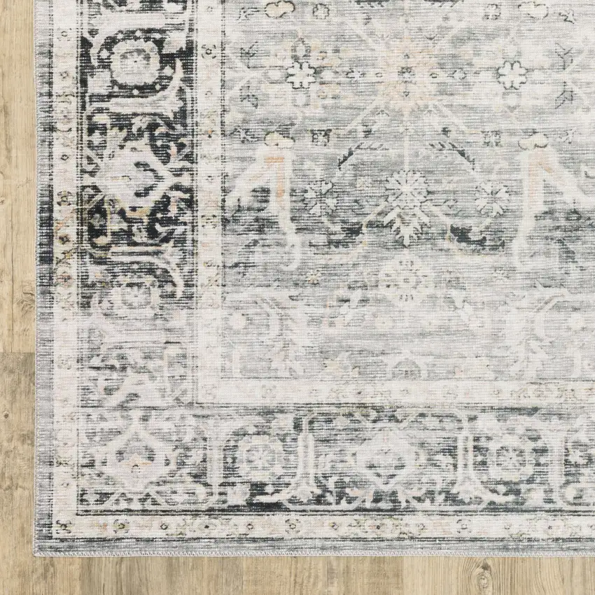 Charcoal Grey Salmon And Ivory Oriental Printed Stain Resistant Non Skid Area Rug