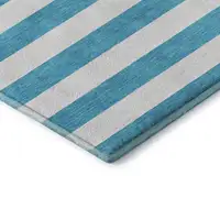 Charcoal Ivory And Blue Striped Washable Area Rug With UV Protection