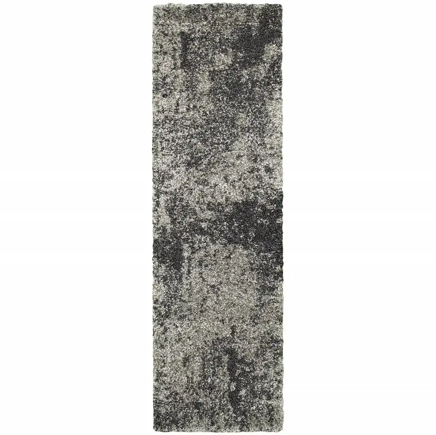 Charcoal Silver And Grey Abstract Shag Power Loom Stain Resistant Runner Rug