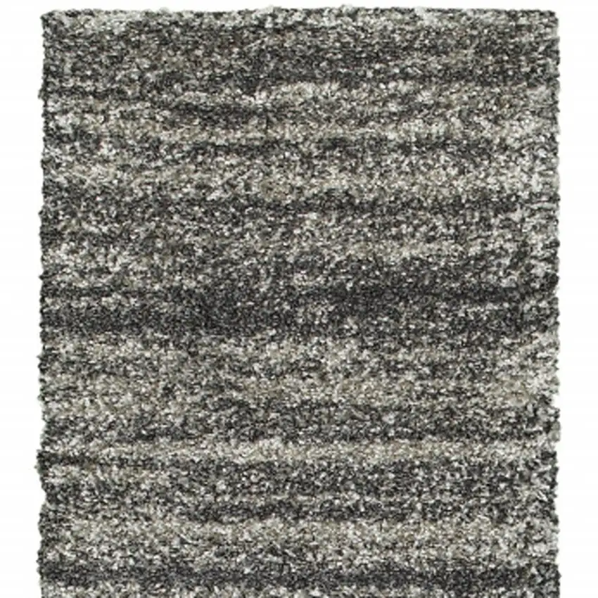 Charcoal Silver And Grey Geometric Shag Power Loom Stain Resistant Runner Rug