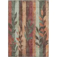 Chili Red And Beige Floral Washable Indoor Outdoor Area Rug