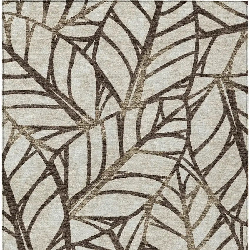 Chocolate And Beige Floral Washable Indoor Outdoor Area Rug