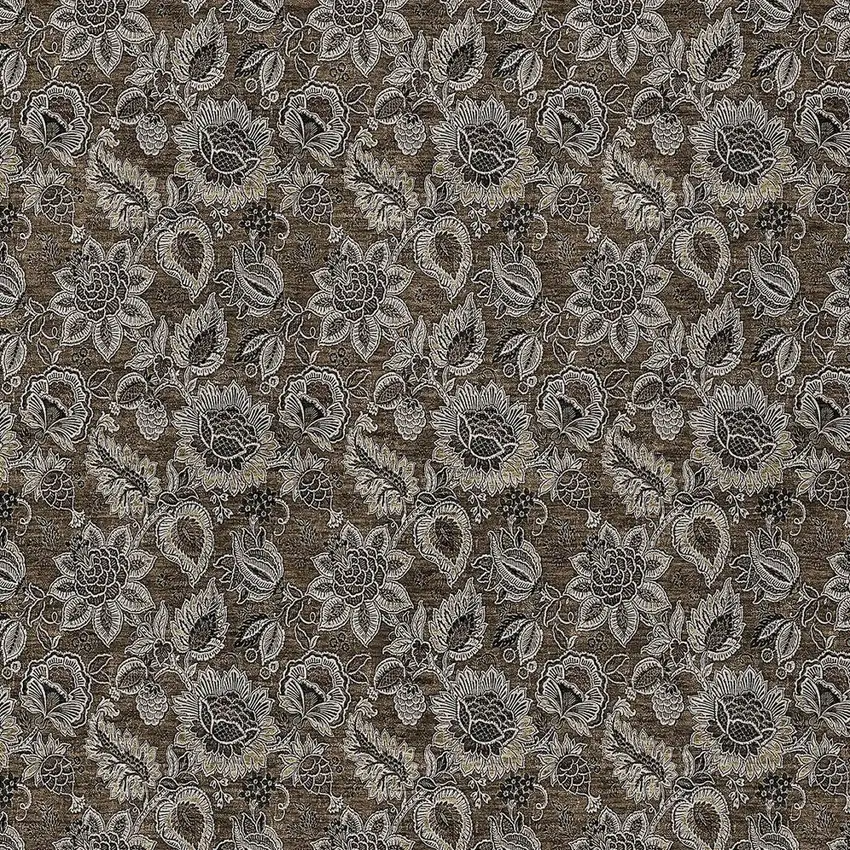 Chocolate And Charcoal Floral Washable Indoor Outdoor Area Rug