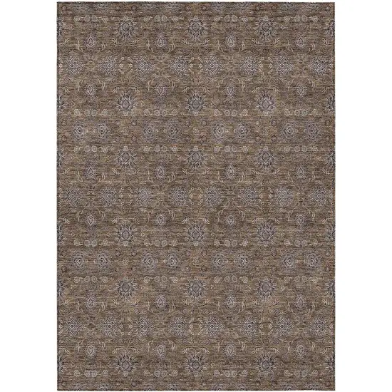 Add some artistry to your room with this 9-foot x 12-foot chocolate and gray floral washable indoor outdoor area rug. This rectangle shaped rug features a floral design that will work well both indoors or out. A classic shape marries with good looking design for your living room, hall, bedroom, porch, patio, or poolside. Ideal for outdoor spaces or high traffic areas with kids and pets, this rug is made from heavy duty polyester that is stain resistant to help repel water, dirt, and stains. Versatile in use, durable, and easy to maintain, this rug is an ideal solution to add a decorative and inviting touch to your indoor or outdoor space. 108-inch h x 144-inch w x 0.19-inch d.