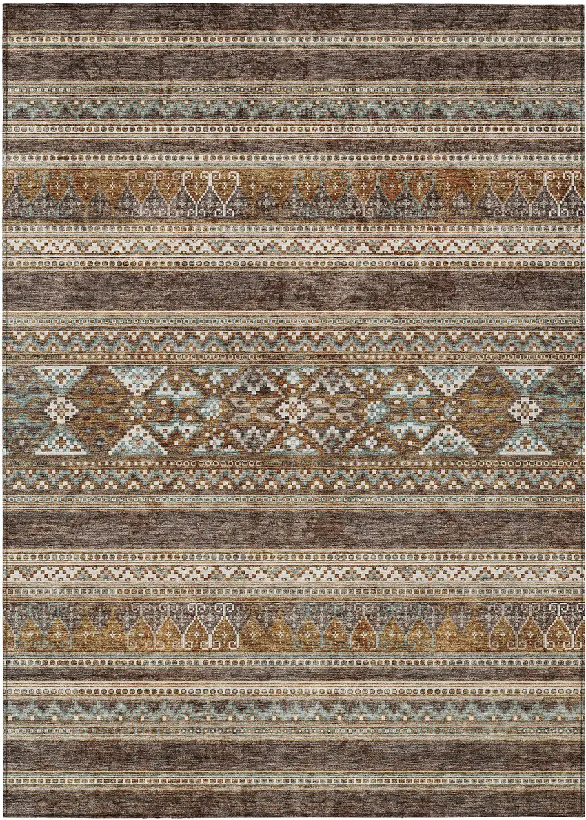 This 9-foot x 12-foot chocolate and gray southwestern washable indoor outdoor area rug, is a great way to add warmth to a room. This rectangle shaped rug features a southwestern design that will work well both indoors or out. A classic shape marries with good looking design for your living room, hall, bedroom, porch, patio, or poolside. Ideal for outdoor spaces or high traffic areas with kids and pets, this rug is made from heavy duty polyester that is stain resistant to help repel water, dirt, and stains. Makes a great way to dress up your patio, porch, or poolside, but also works well as a durable and easy to maintain option in the kitchen, family room, or mudroom. 108-inch h x 144-inch w x 0.19-inch d.