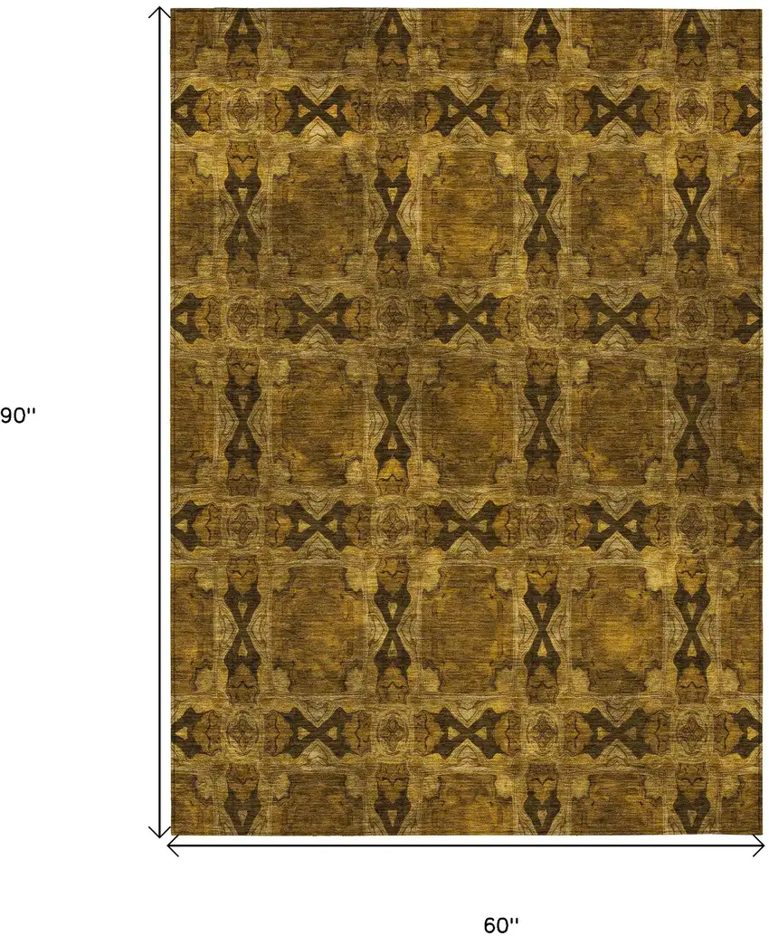 Chocolate Floral Medallion Washable Non Skid Indoor Outdoor Area Rug