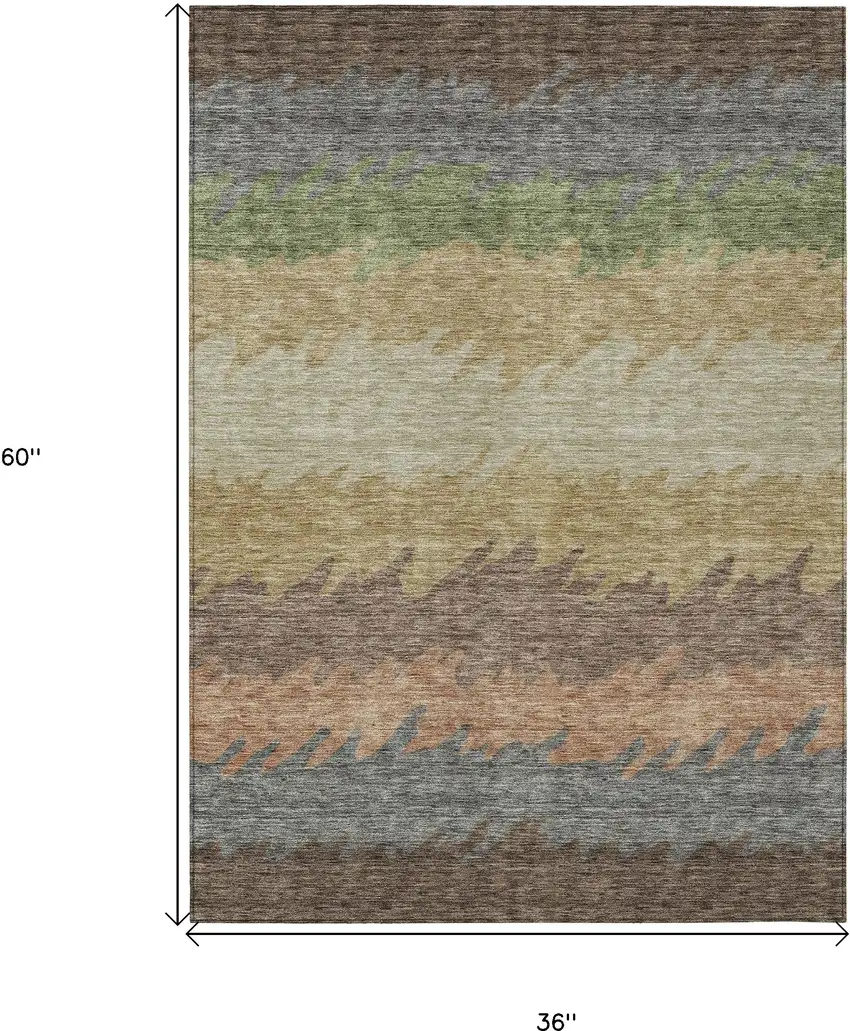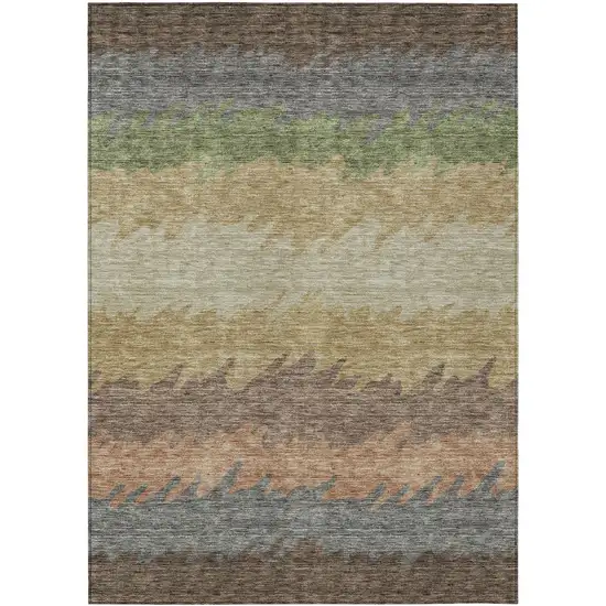Chocolate Gray And Green Striped Washable Indoor Outdoor Area Rug
