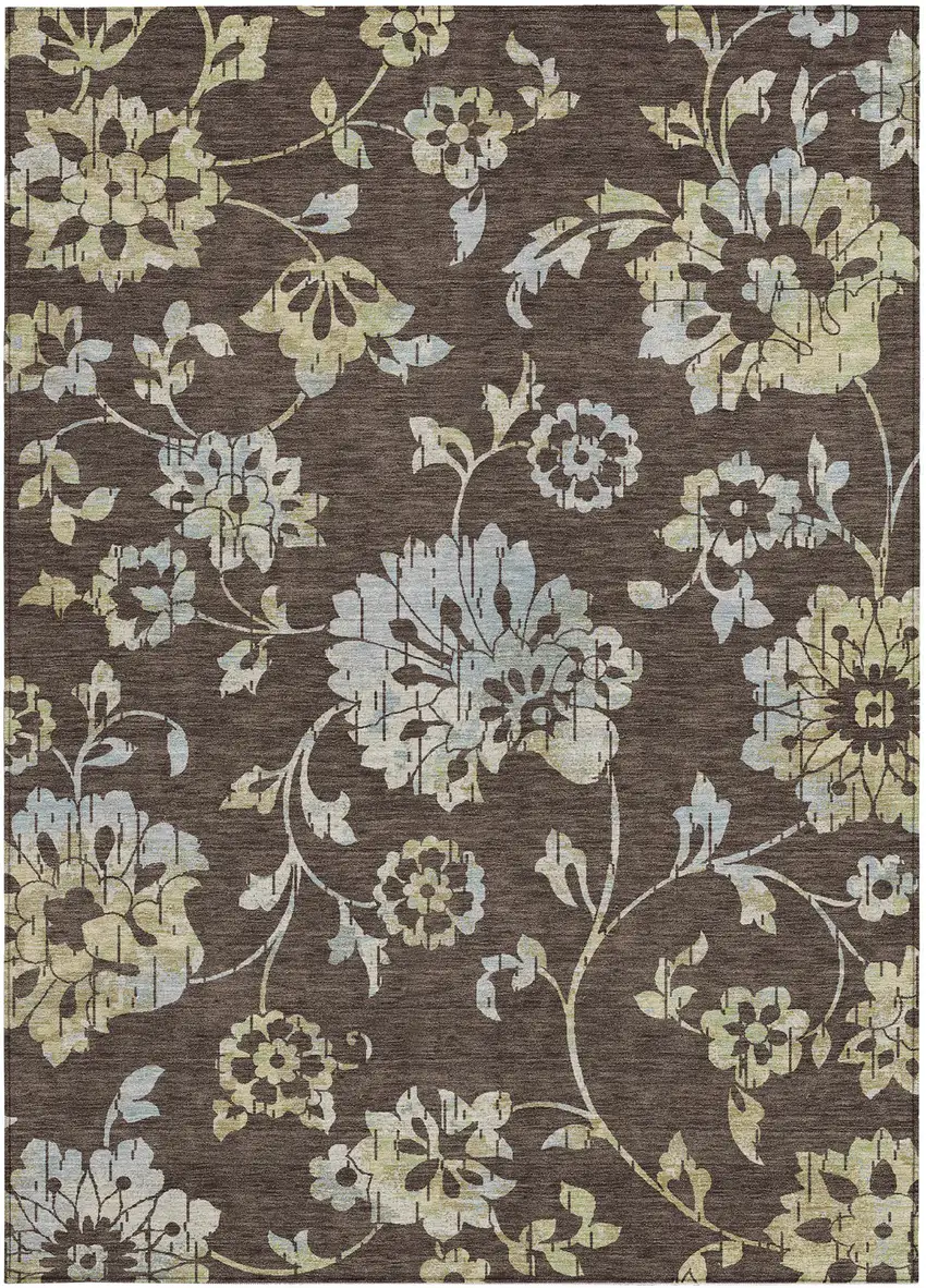 Add great coloration and comfortable texture to your space with this 5-foot x 8-foot chocolate sky blue and artichoke green floral washable indoor outdoor area rug. This rectangle shaped rug features a floral design that will work well both indoors or out. A classic shape marries with good looking design for your living room, hall, bedroom, porch, patio, or poolside. Ideal for outdoor spaces or high traffic areas with kids and pets, this rug is made from heavy duty polyester that is stain resistant to help repel water, dirt, and stains. Makes a great way to dress up your patio, porch, or poolside, but also works well as a durable and easy to maintain option in the kitchen, family room, or mudroom. 60-inch h x 90-inch w x 0.19-inch d.