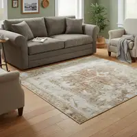 Coffee And Beige Geometric Washable Area Rug With UV Protection