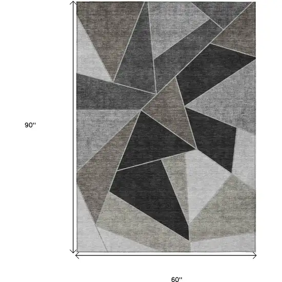 Add great coloration and comfortable texture to your space with this 5-foot x 8-foot coffee charcoal and gray geometric washable indoor outdoor area rug. This rectangle shaped rug features a geometric design that will work well both indoors or out. A classic shape marries with good looking design for your living room, hall, bedroom, porch, patio, or poolside. Ideal for outdoor spaces or high traffic areas with kids and pets, this rug is made from heavy duty polyester that is stain resistant to help repel water, dirt, and stains. Makes a great way to dress up your patio, porch, or poolside, but also works well as a durable and easy to maintain option in the kitchen, family room, or mudroom. 60-inch h x 90-inch w x 0.19-inch d.