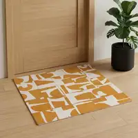 Copper And Beige Abstract Geometric Washable Area Rug With UV Protection