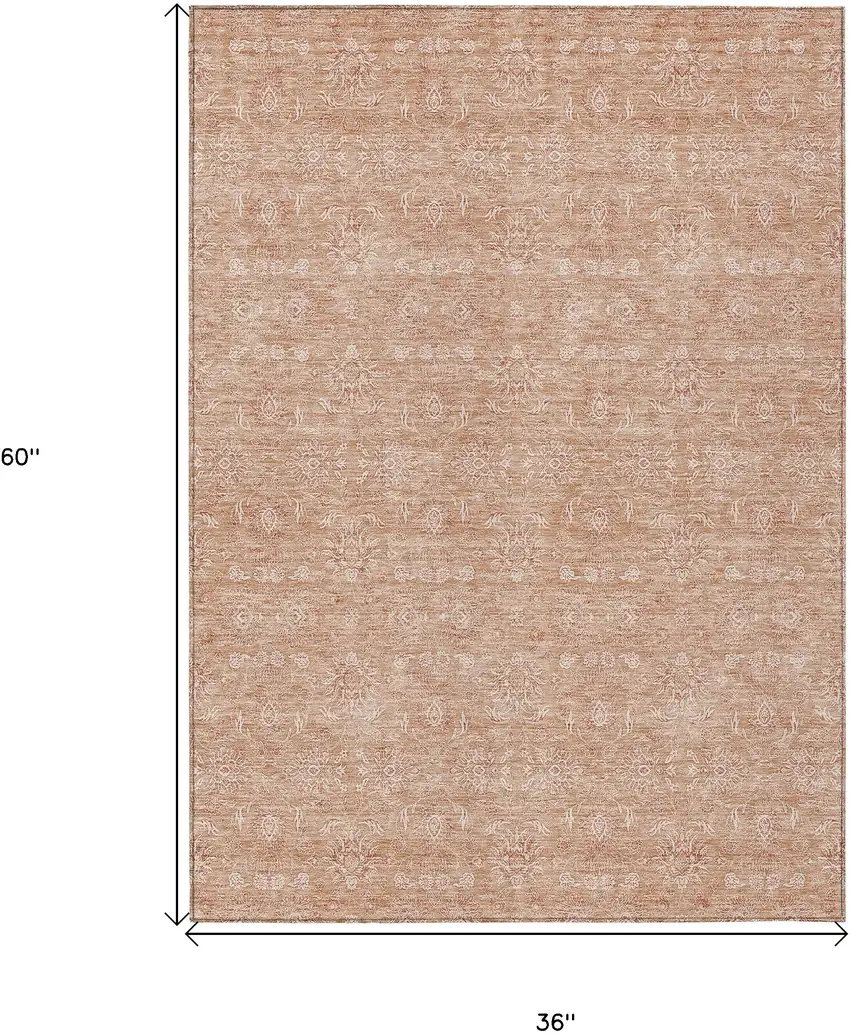 Copper And Beige Floral Washable Indoor Outdoor Area Rug