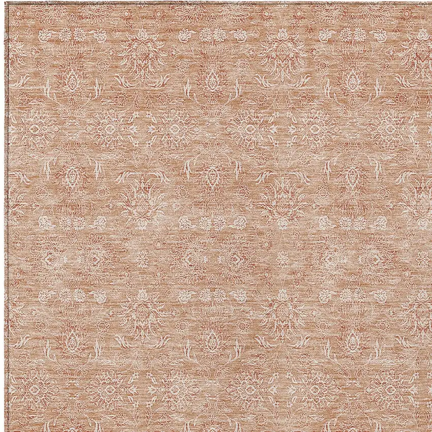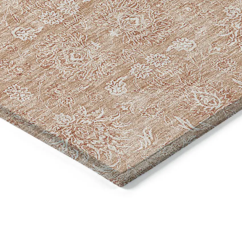 Copper And Beige Floral Washable Indoor Outdoor Area Rug