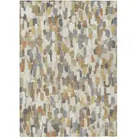 Copper And Green Abstract Washable Indoor Outdoor Area Rug