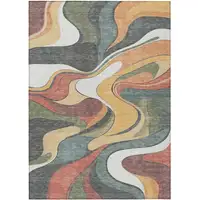 Copper And Ivory Abstract Washable Indoor Outdoor Area Rug