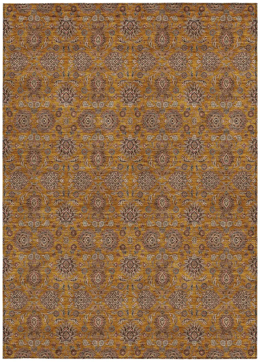 Copper Beige And Taupe Floral Washable Indoor Outdoor Area Rug