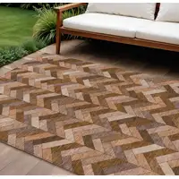 Copper Brown And Ivory Abstract Washable Indoor Outdoor Area Rug
