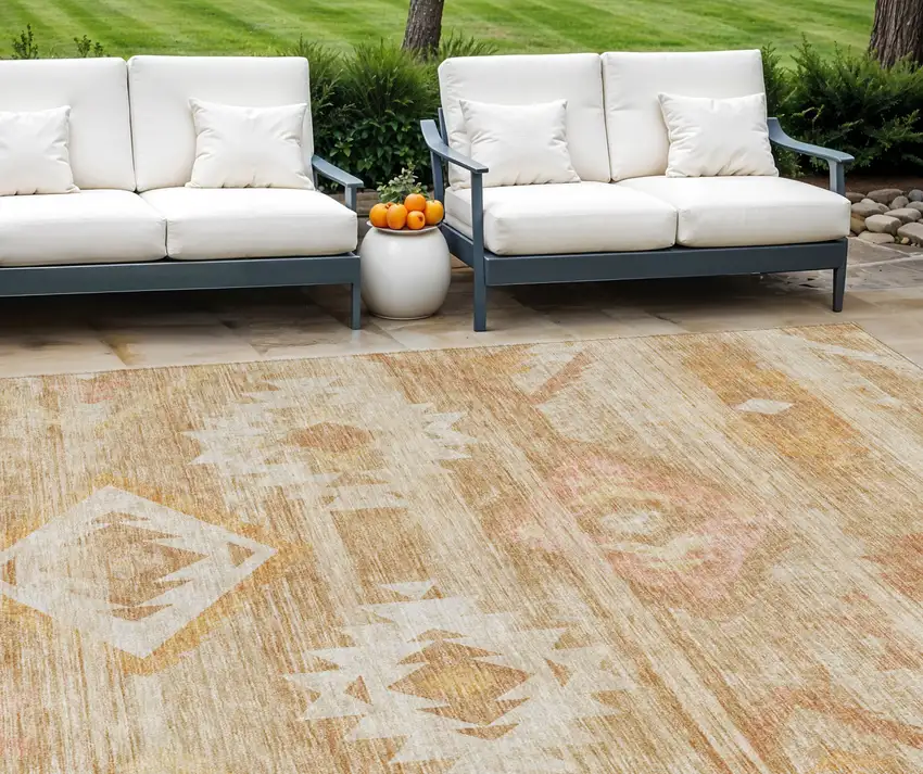 Add great coloration and comfortable texture to your space with this 10-foot x 14-foot copper terra cotta and ivory southwestern washable indoor outdoor area rug. This rectangle shaped rug features a southwestern design that will work well both indoors or out. A classic shape marries with good looking design for your living room, hall, bedroom, porch, patio, or poolside. Ideal for outdoor spaces or high traffic areas with kids and pets, this rug is made from heavy duty polyester that is stain resistant to help repel water, dirt, and stains. Makes a great way to dress up your patio, porch, or poolside, but also works well as a durable and easy to maintain option in the kitchen, family room, or mudroom. 120-inch h x 168-inch w x 0.19-inch d.