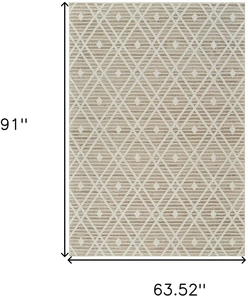 Cream and Brown Geometric Distressed Indoor Outdoor Area Rug
