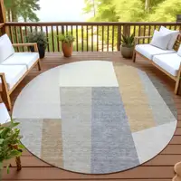 Cream And Green Abstract Washable Indoor Outdoor Area Rug