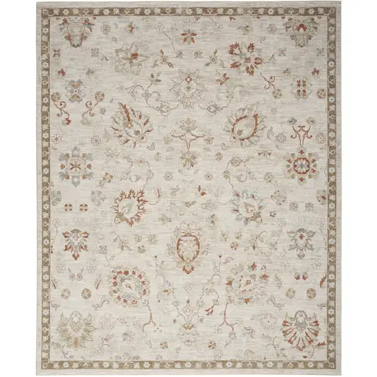 Cream Floral Power Loom Distressed Area Rug With Fringe