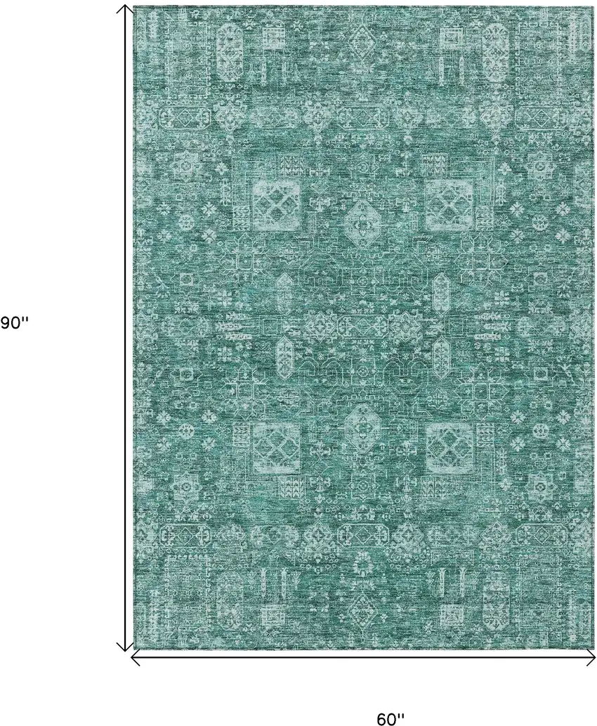 Dark Green And Aqua Oriental Washable Indoor Outdoor Area Rug