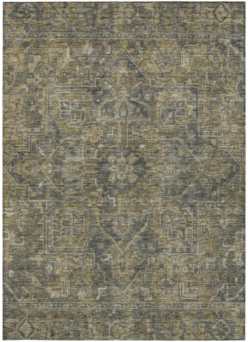Dark Moss Green and Gray Oriental Washable Non Skid Indoor Outdoor Area Rug