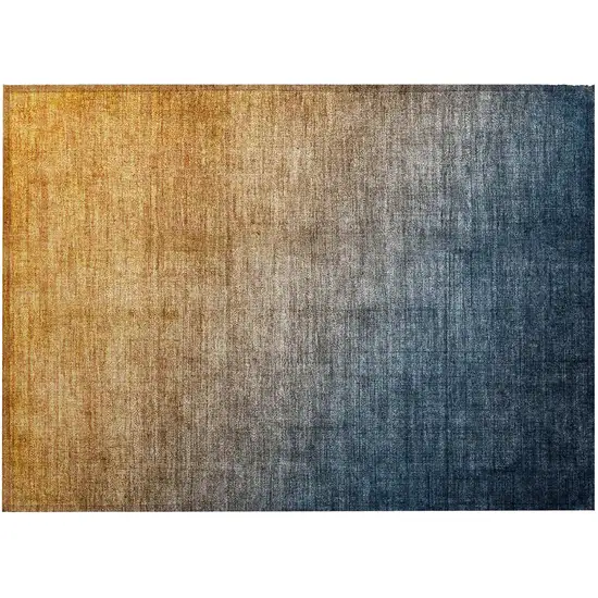 Denim and Gold Ombre Washable Non Skid Indoor Outdoor Area Rug