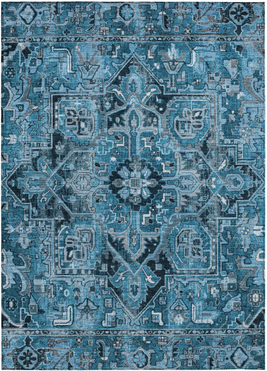 Denim and Gray Oriental Washable Non Skid Indoor Outdoor Area Rug
