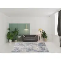 Denim Blue And Gray Geometric Washable Area Rug With UV Protection