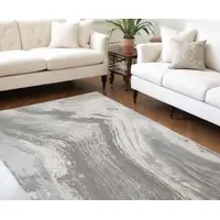 Denim Blue And Gray Oriental Washable Area Rug With UV Protection