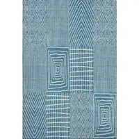 Denim Blue And Ivory Abstract Washable Area Rug With UV Protection