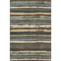 Denim Blue And Ivory Geometric Washable Area Rug With UV Protection