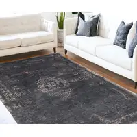 Denim Blue And Ivory Geometric Washable Area Rug With UV Protection