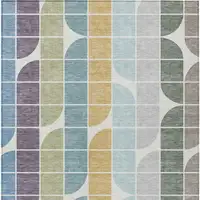 Denim Blue And Ivory Geometric Washable Indoor Outdoor Area Rug